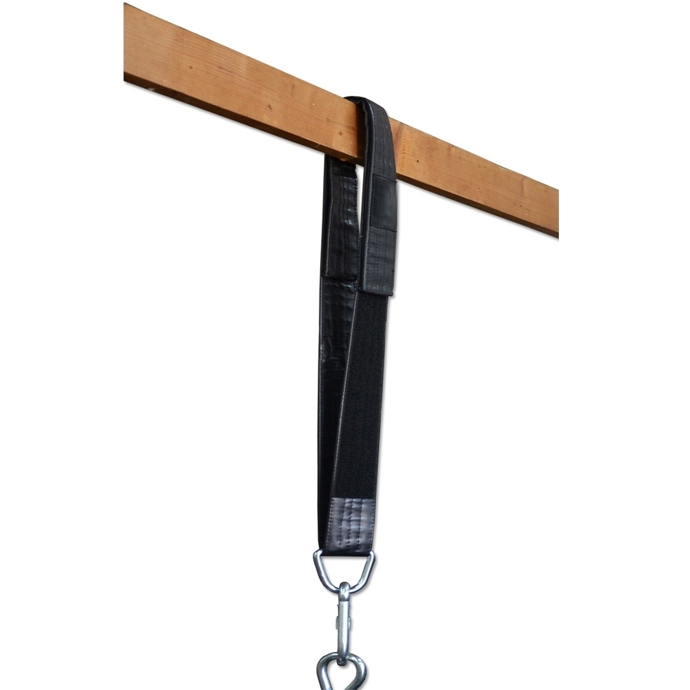 • easier to hang on any beam, 10 inches to 36 inches allowable adjustment of this strap, made out of heavy duty nylon web straps layer in between military grade 22oz polyester coated vinyl material. Good to install on Rafters, Ceiling Joists, I-Beam, Metal Racks.